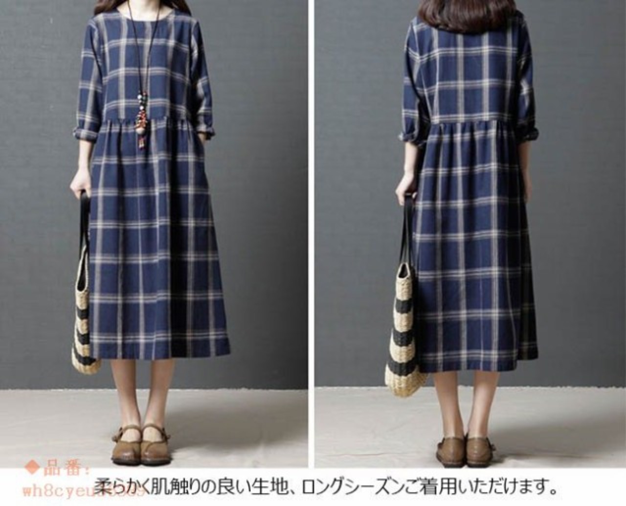 ワンピース レディース チェック柄 ロング丈 ミモレ丈 長袖 ゆったり オールインワン 春 夏 秋 2018春新作