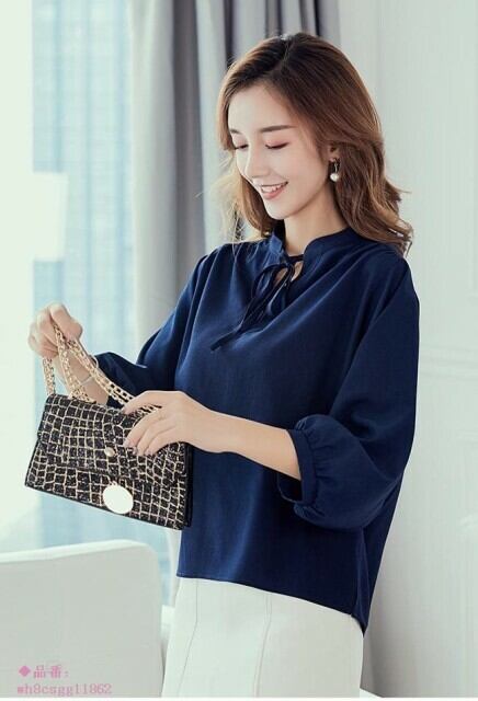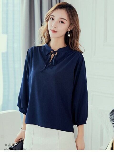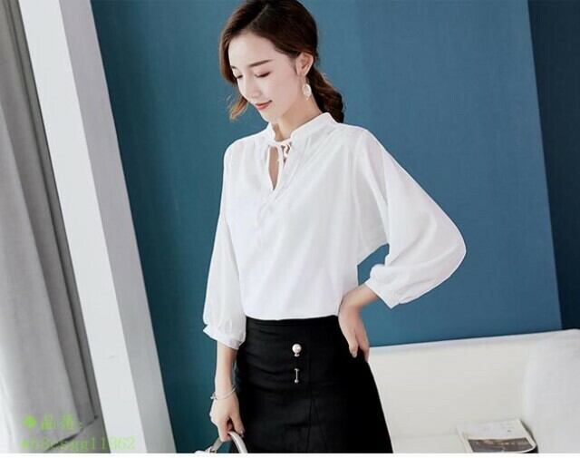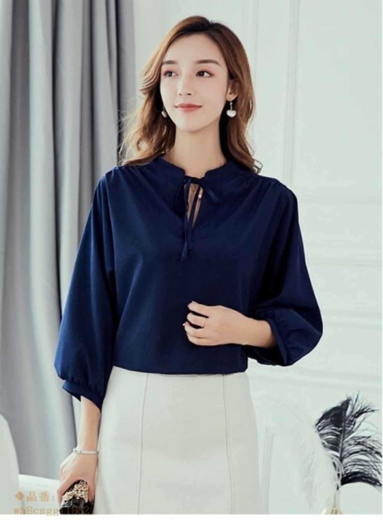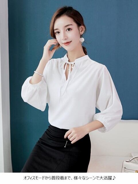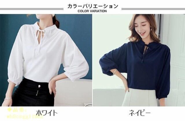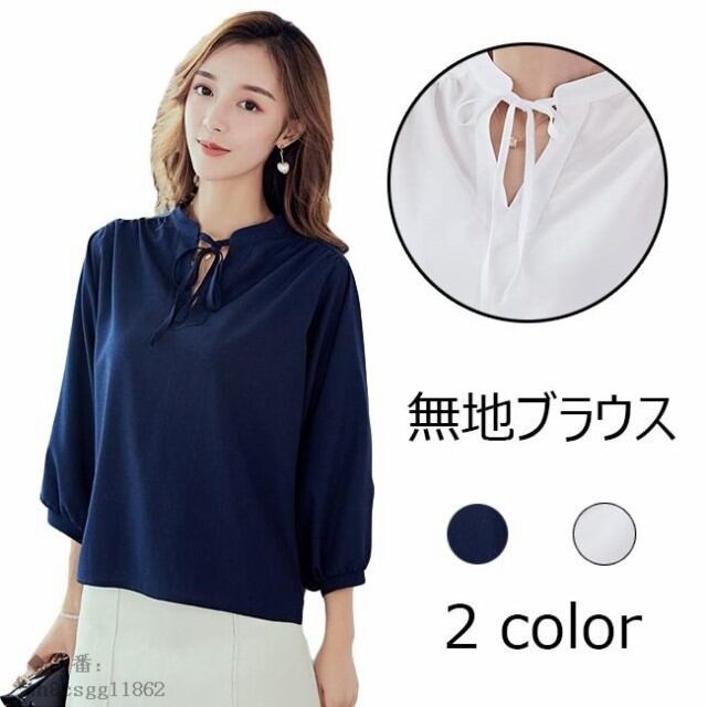 ブラウス レディース 無地 7分袖 リボン パフスリーブ すっきり ゆったり オシャレ シャツ トップス 春 夏 秋 2019春新作