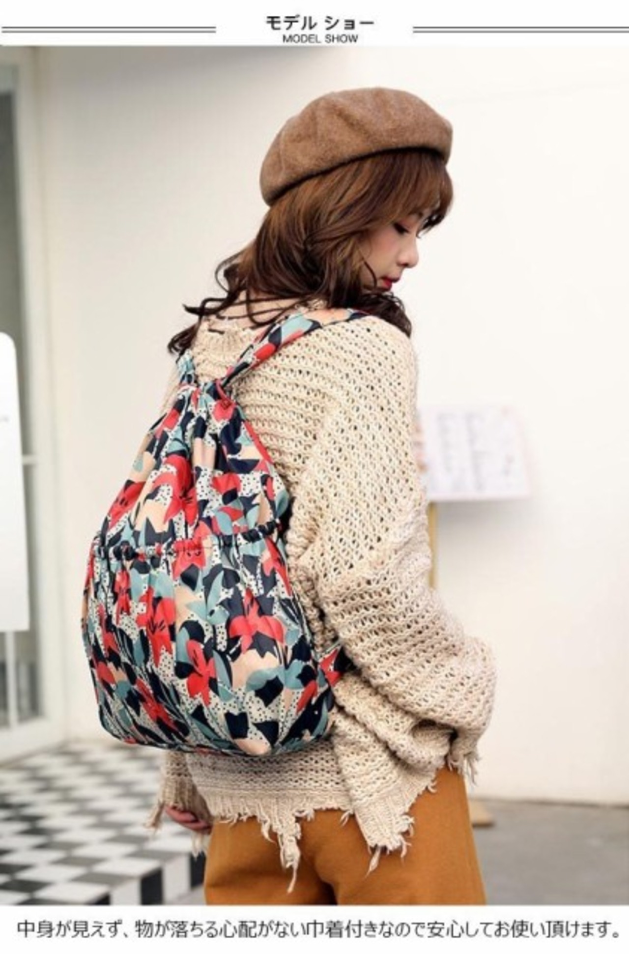 中身が見えず、物が落ちる心配がない巾着付きなので安心してお使い頂けます。