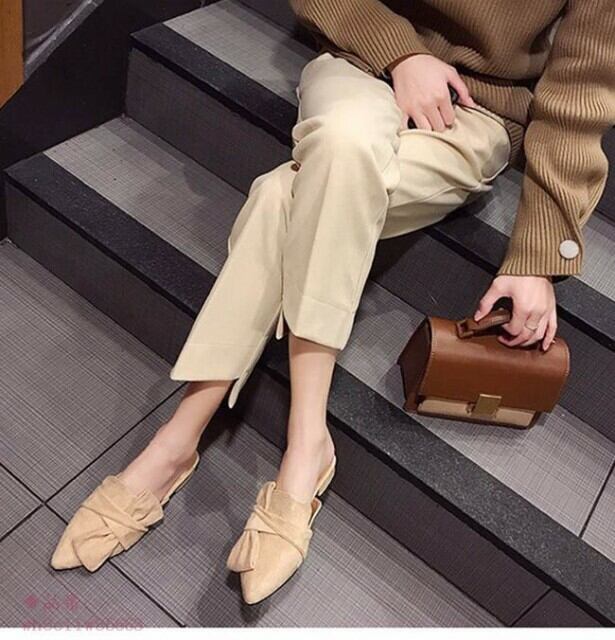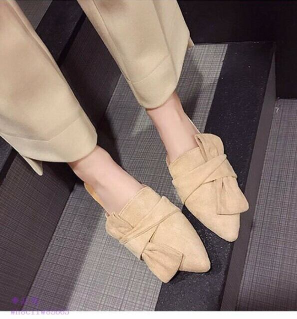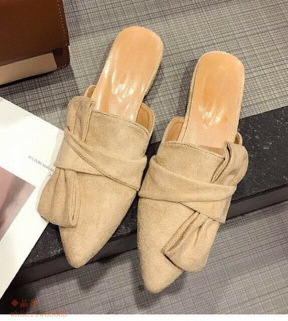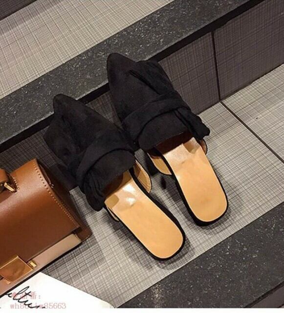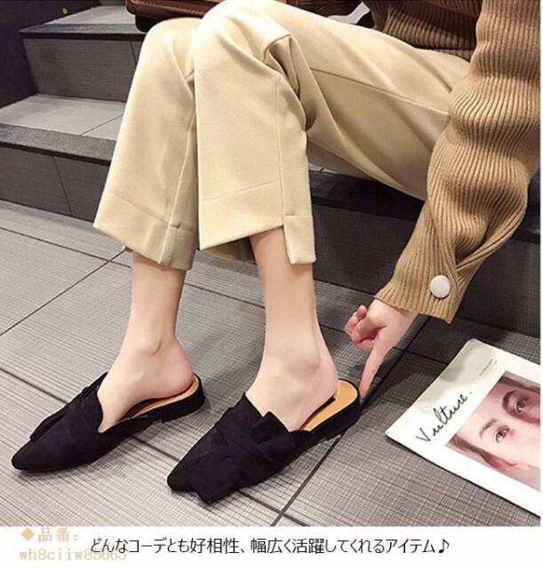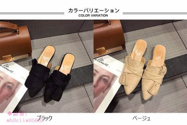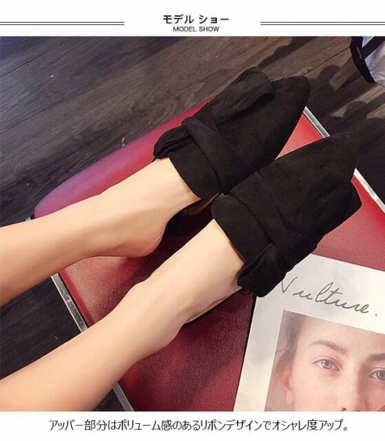 ミュール レディース ローヒール リボン 合皮 フェイクレザー 夏 オシャレ スエード調 秋 2018春新作 ポインテッドトゥ パンプス カジュアル シューズ 靴 春