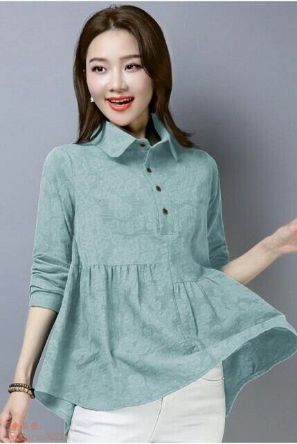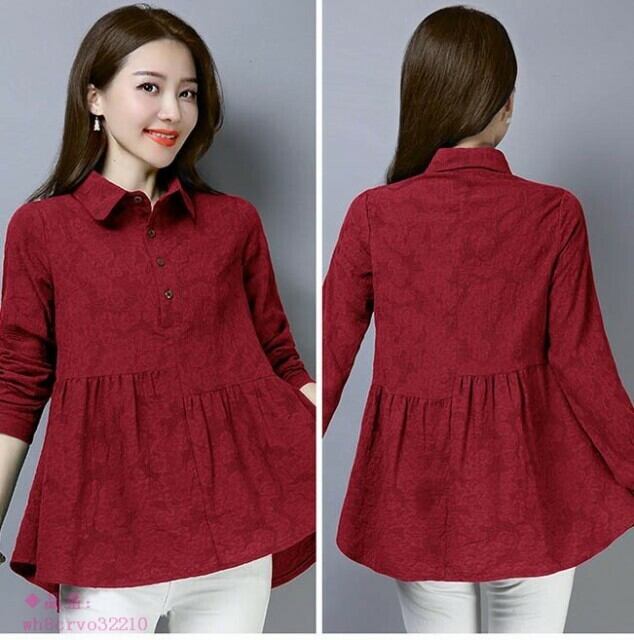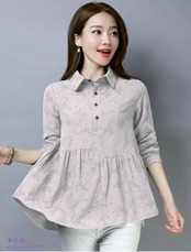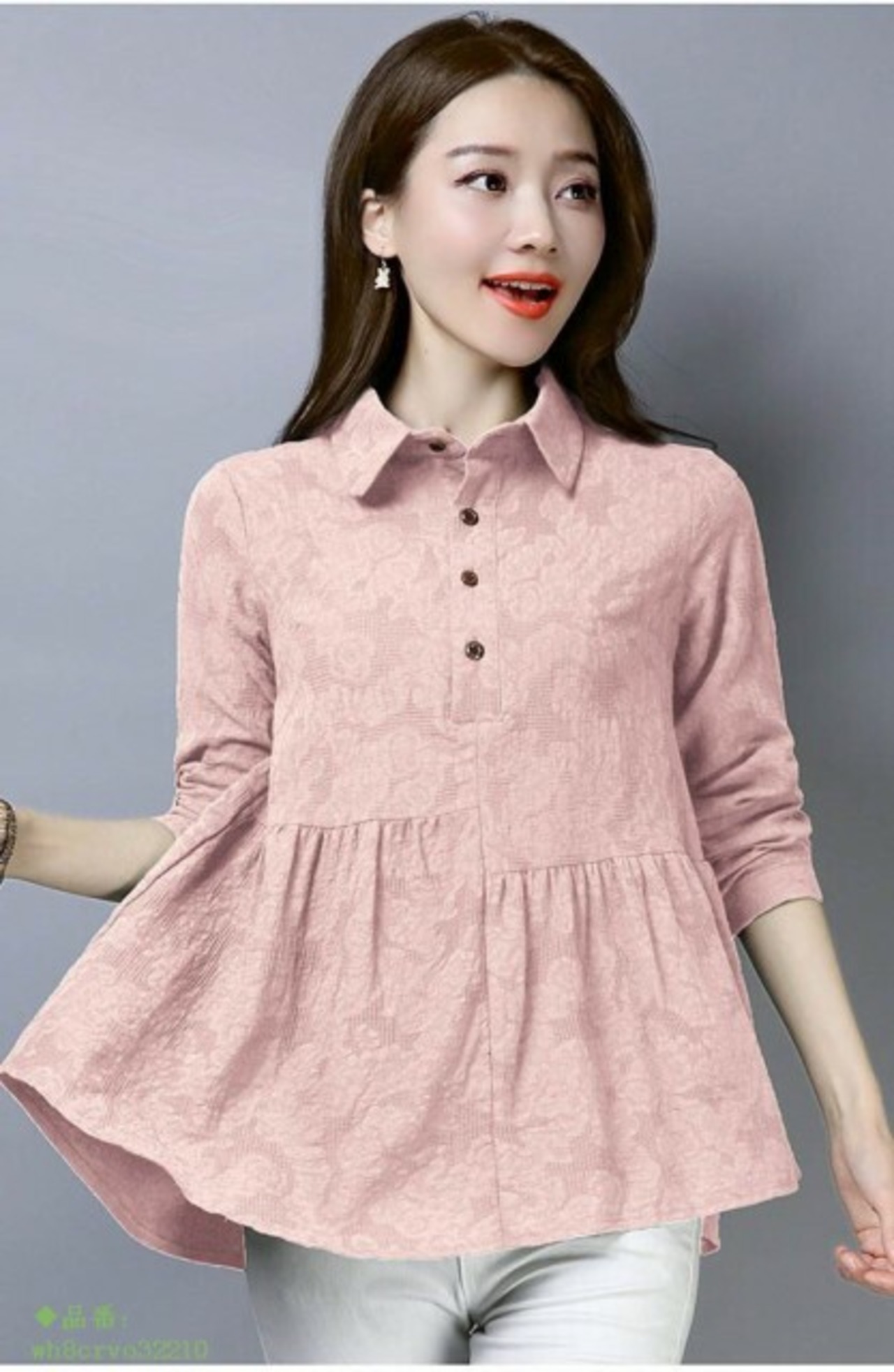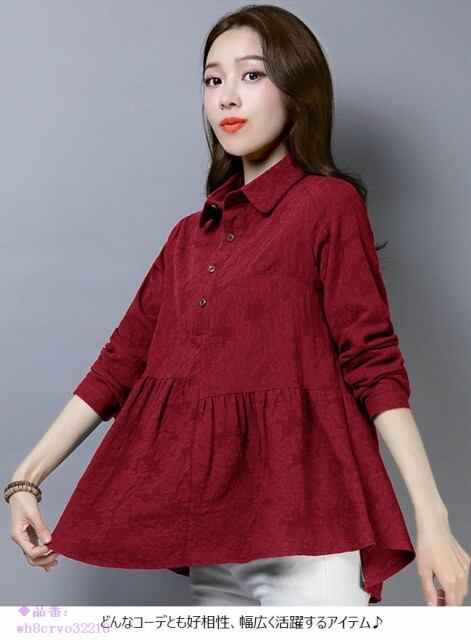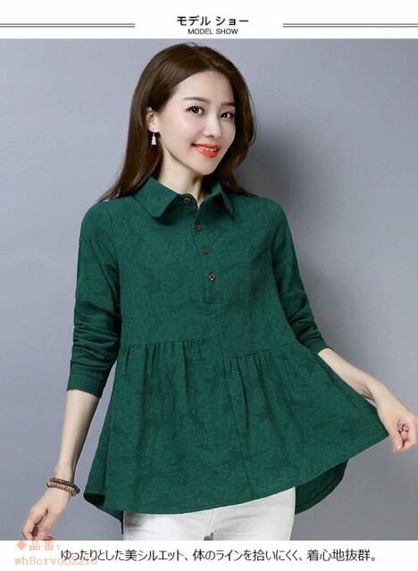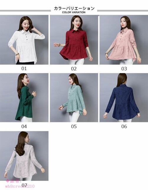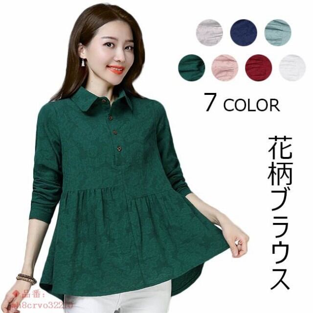 ブラウス レディース 花柄 春 冬 秋 ヘンリーネック シャツ 長袖 トップス リネン 2019年春新作 ゆったり