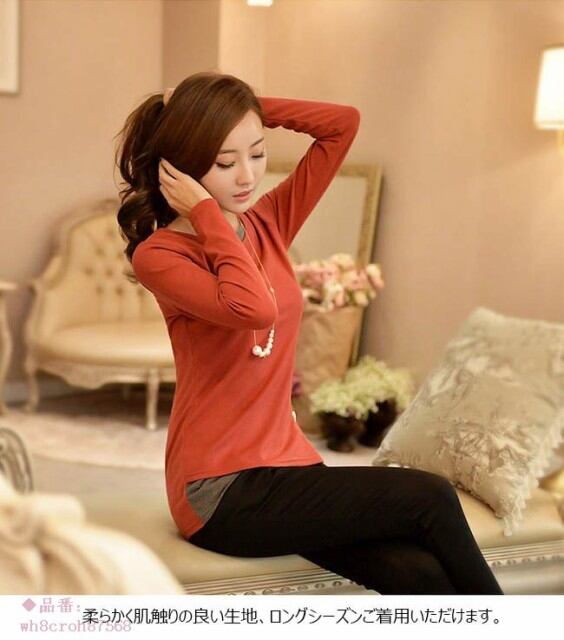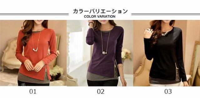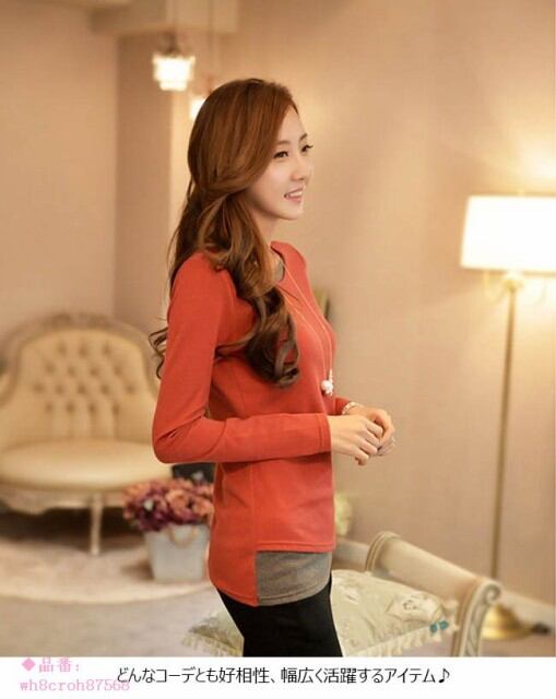 Tシャツ レディース 重ね着 ラウンドネック 無地 長袖 ブラウス レイヤード トップス 秋 冬 春 2019年春新作