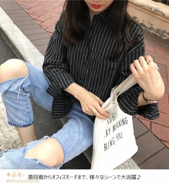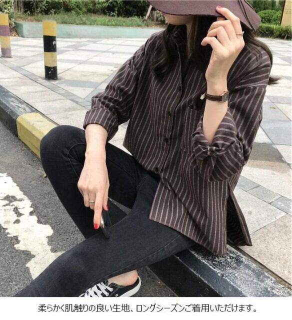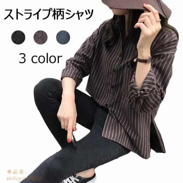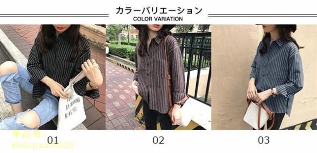 シャツ レディース ストライプ柄 長袖 すっきり カジュアル ゆったり オシャレ トップス 春 夏 秋 2019春新作