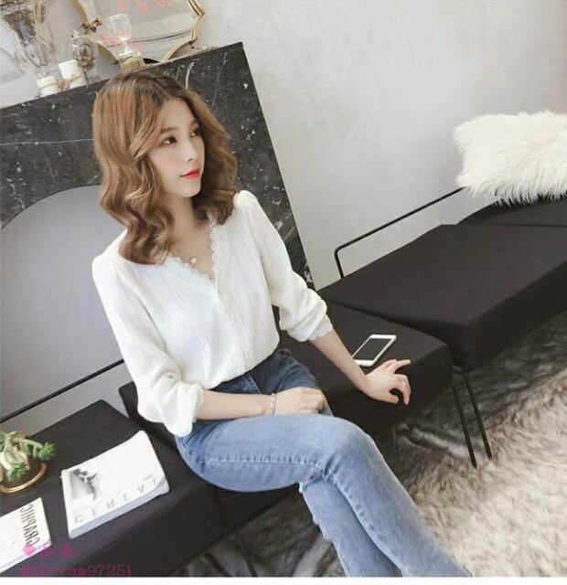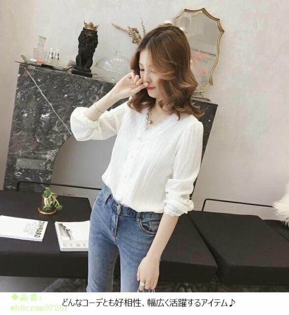 ブラウス レディース とろみシャツ レース 無地 長袖 Vネック ゆったり トップス 秋 冬 春 2019年春新作