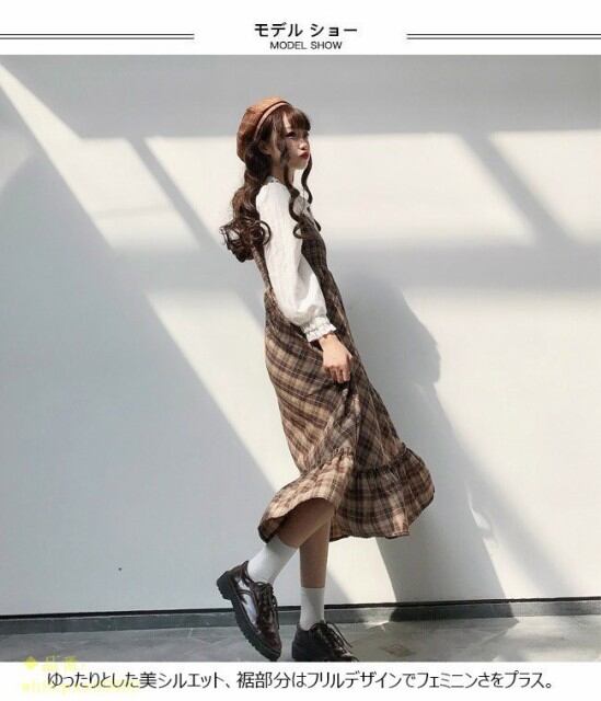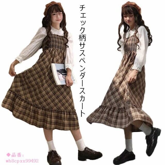 サスペンダースカート単品 レディース キャミワンピ ミモレ丈 オールインワン ロング丈 春 ワンピース 秋 夏 2018春新作 フリル チェック柄