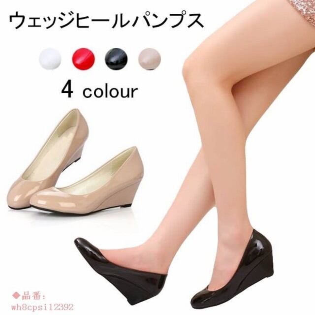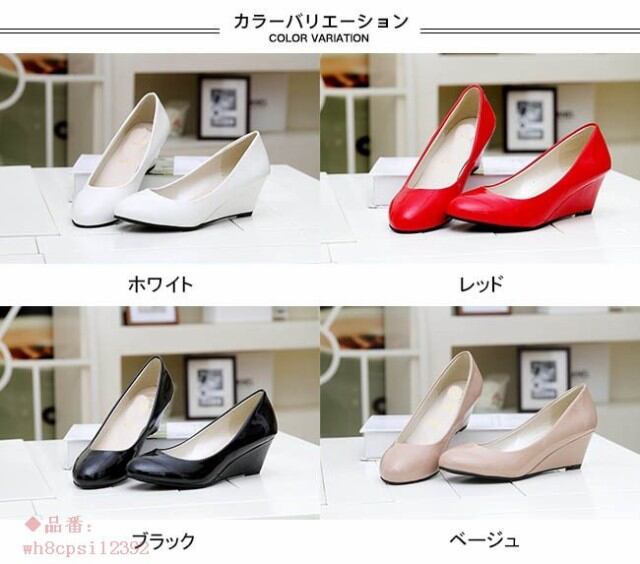 パンプス レディース ウェッジヒール フェイクレザー 夏 靴 春 2018春新作 ラウンドトゥ フォーマル 合皮 ハイヒール シューズ 通勤 秋
