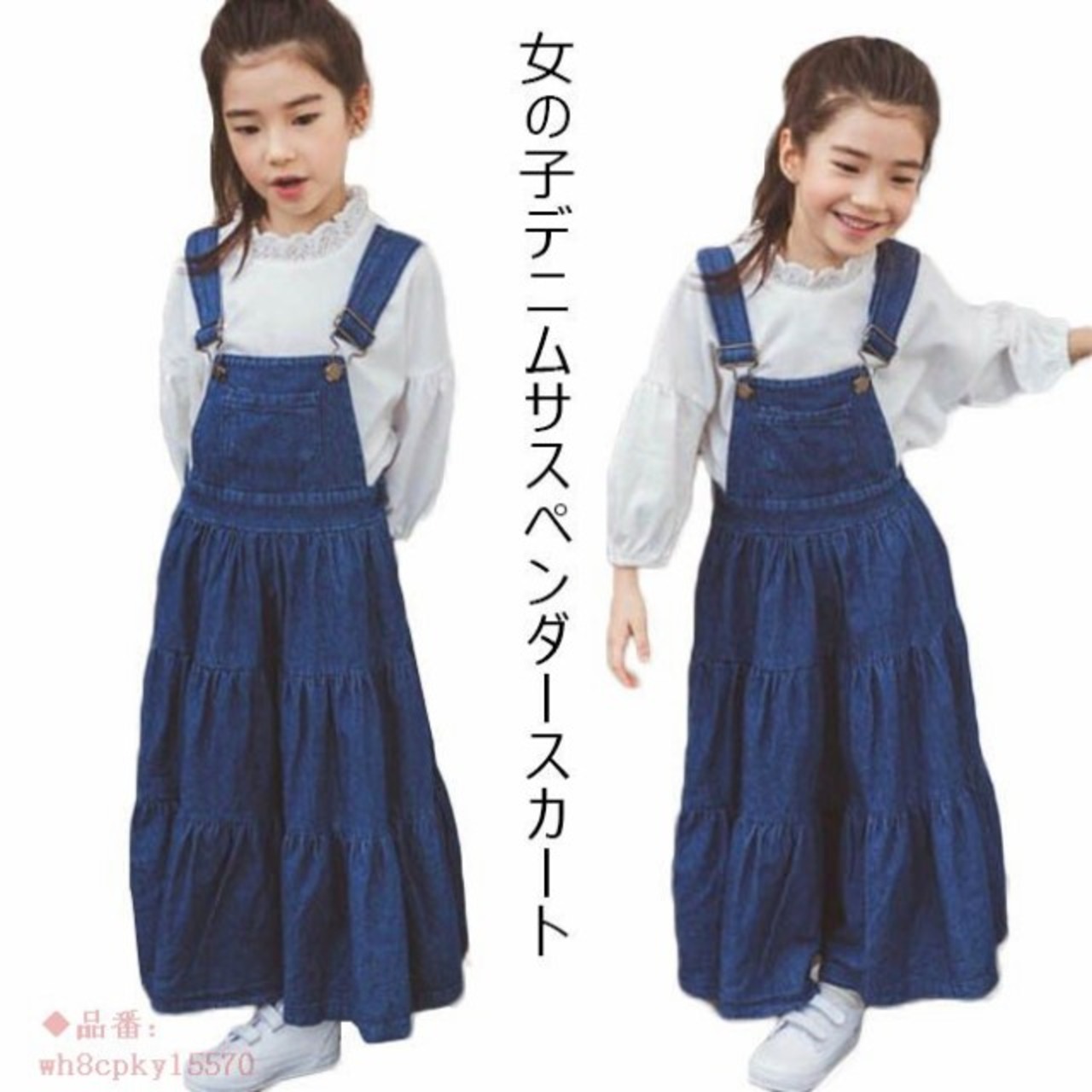 サスペンダースカート キッズ 女の子 秋 夏 ワンピース 2018春新作 マキシ丈 春 オールインワン デニム サロペットスカート ゆったり