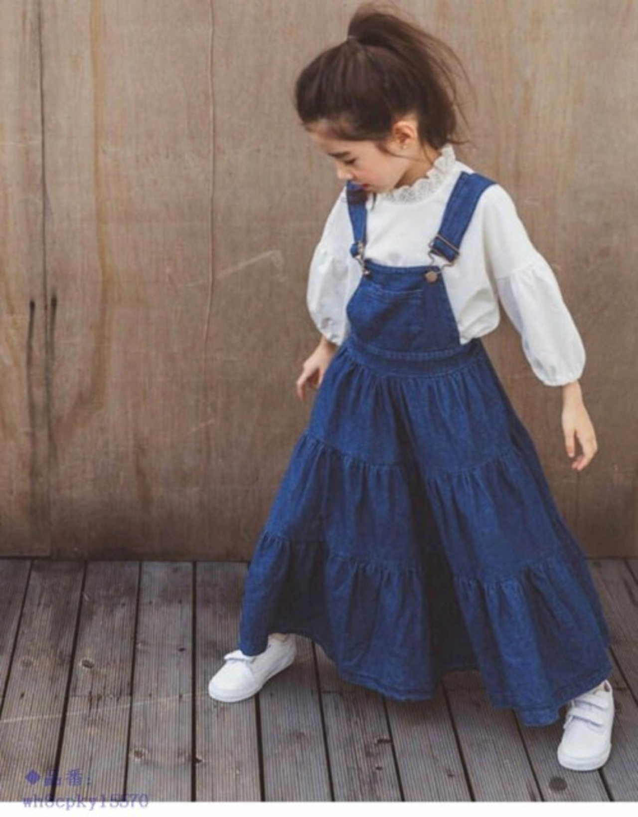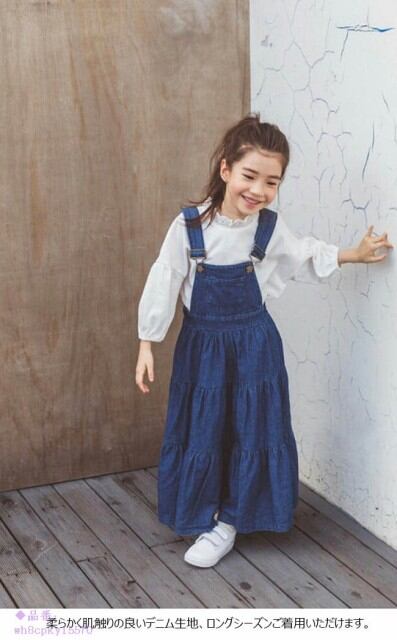 サスペンダースカート キッズ 女の子 サロペットスカート デニム マキシ丈 ゆったり ワンピース オールインワン 春 夏 秋 2018春新作