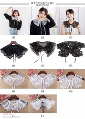 繊細なレース模様で襟元のお洒落を楽むアイテム。