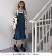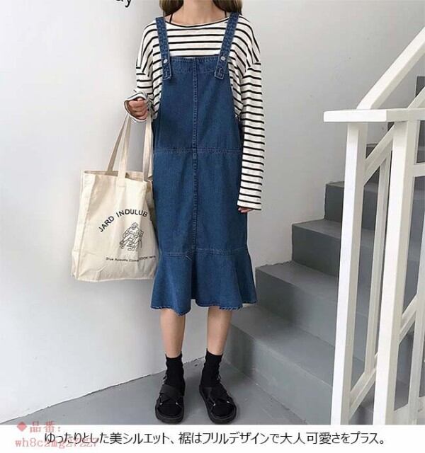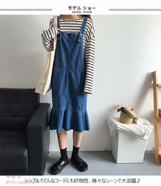 サロペットスカート レディース デニム サスペンダー フリル ロング丈 ミモレ丈 キャミワンピ ワンピース オールインワン 春 夏 秋 2019春新作