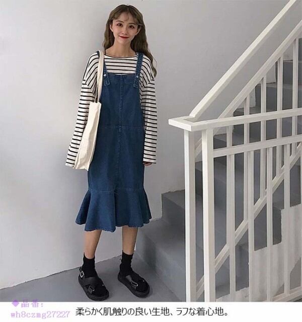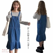 サロペットスカート レディース デニム ワンピース キャミワンピ ミモレ丈 フリル 春 ロング丈 サスペンダー 夏 オールインワン 2019春新作 秋