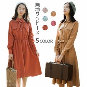 ワンピース レディース 無地 リボン 2018春新作 オールインワン 夏 秋 春 ミモレ丈 ロング丈 長袖 ハイウエスト