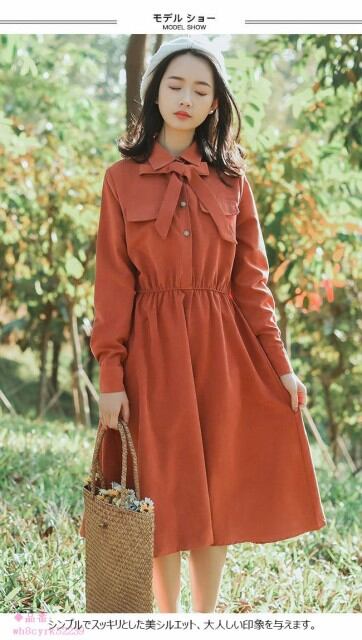 ワンピース レディース 無地 リボン 長袖 ロング丈 ミモレ丈 ハイウエスト オールインワン 春 夏 秋 2018春新作
