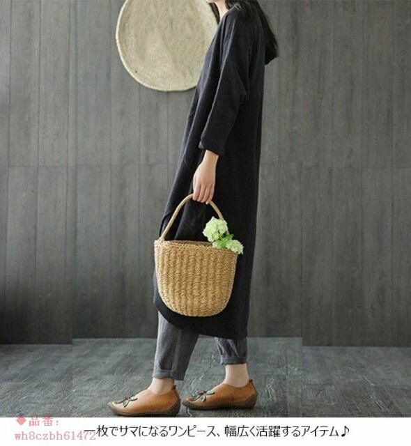 ワンピース レディース 体型カバー 無地 マキシ丈 ロング丈 長袖 ゆったり ラウンドネック オールインワン 春 夏 秋 2018春新作
