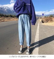 テーパードパンツ レディース デニム 無地 10分丈 ロングパンツ ゆったり ボトムス 秋 冬 春 2019年春新作