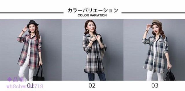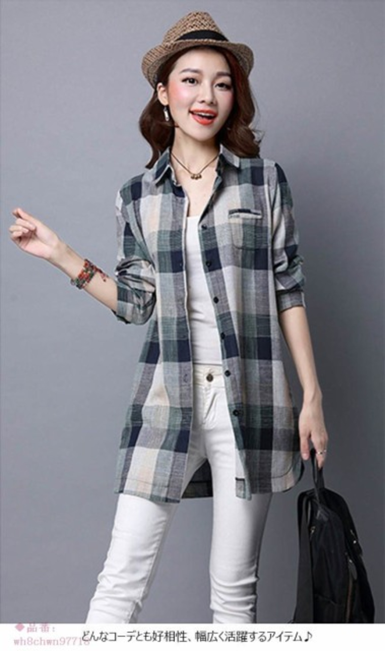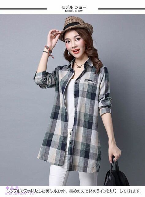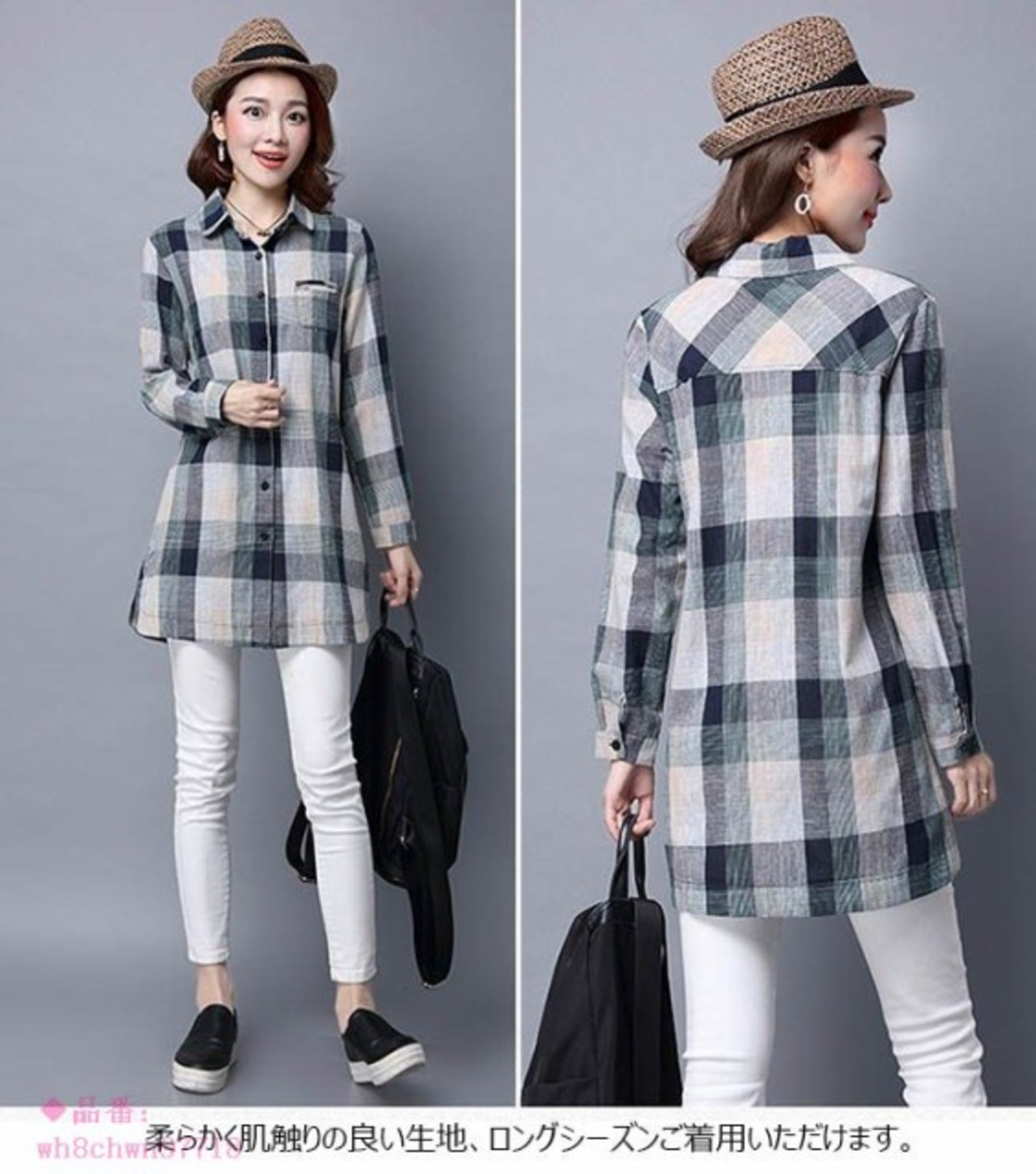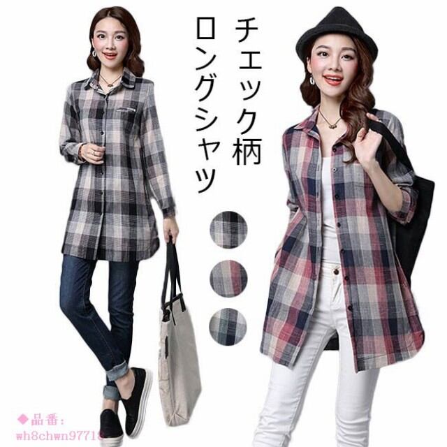ロングシャツ レディース チェック柄 長袖 ゆったり ロング丈 ブラウス トップス 秋 冬 春 2019年春新作