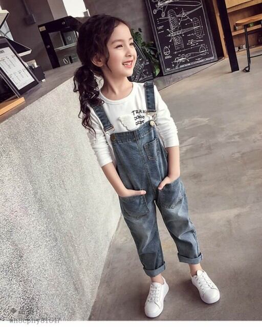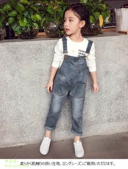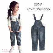 デニムサロペットパンツ キッズ 女の子 ロング丈 オーバーオール オールインワン 春 夏 秋 2018春新作