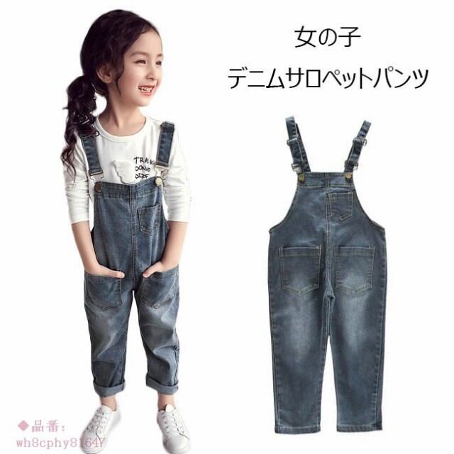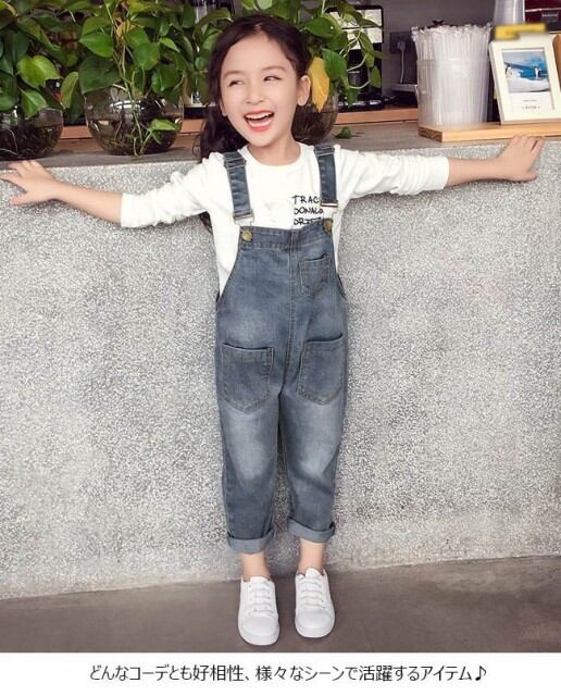 デニムサロペットパンツ キッズ 女の子 夏 秋 2018春新作 オーバーオール 春 ロング丈 オールインワン