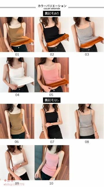 キャミソール レディース ニット 波打つ 裏起毛 厚手 無地 リブ編み ノースリーブ 重ね着 タンクトップ インナー トップス 春 夏 秋 2018春新作