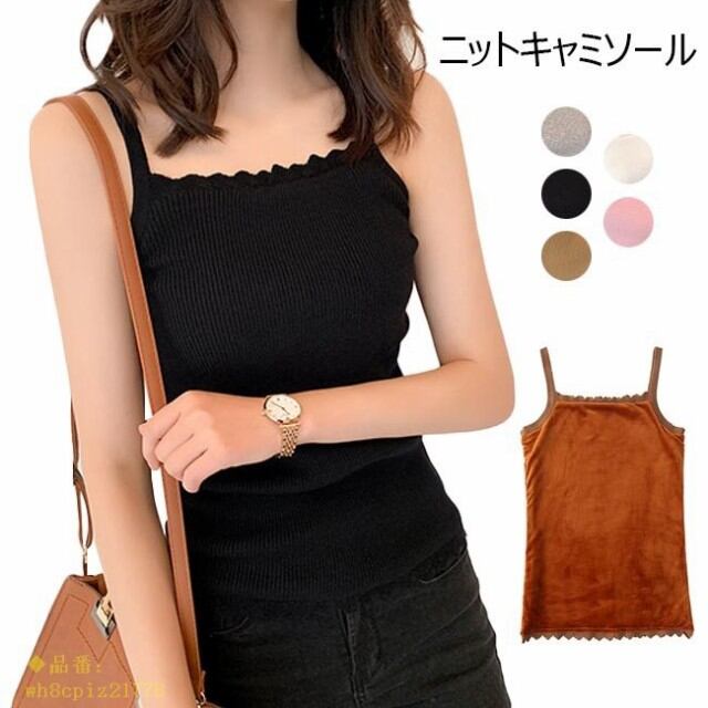 キャミソール レディース ニット 2018春新作 波打つ リブ編み 無地 インナー 夏 厚手 秋 タンクトップ 裏起毛 トップス 春 重ね着 ノース