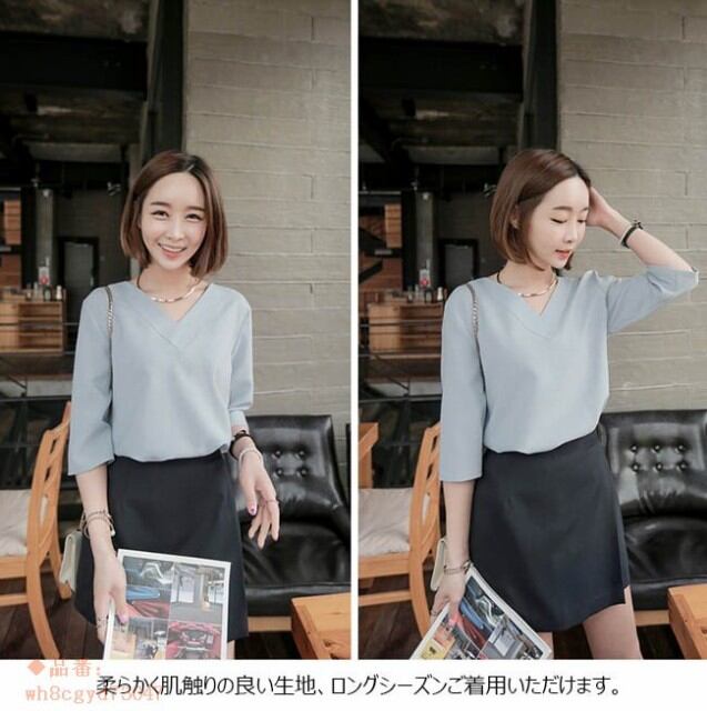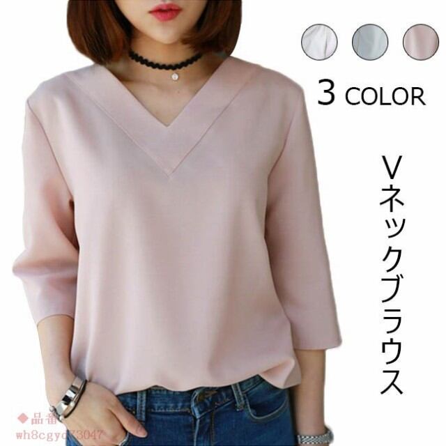 ブラウス レディース とろみシャツ 無地 7分袖 Vネック ゆったり 大きいサイズ トップス 秋 冬 春 2019年春新作