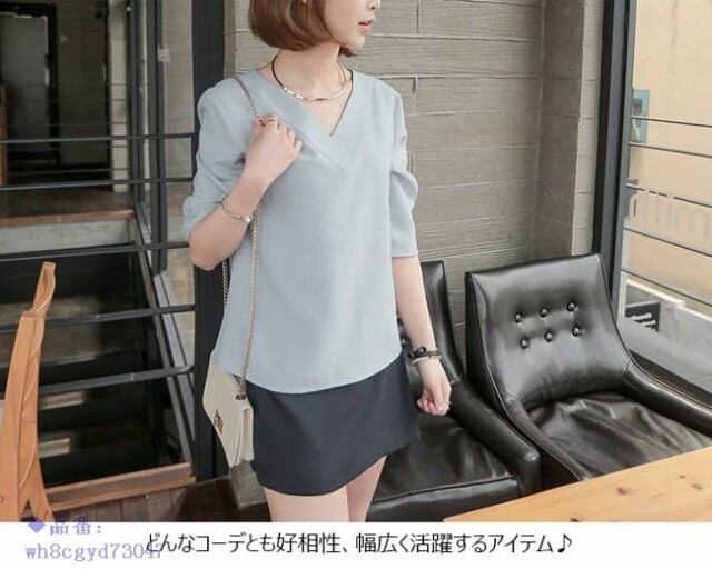 ブラウス レディース とろみシャツ 7分袖 Vネック 2019年春新作 春 ゆったり 無地 秋 トップス 大きいサイズ 冬