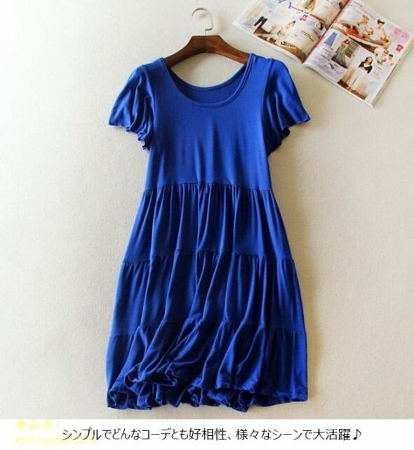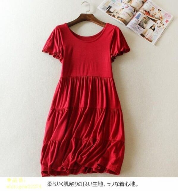 ワンピース レディース 無地 モダール 膝丈 半袖 ハイウエスト シンプル ゆったり オールインワン 春 夏 秋 2019春新作