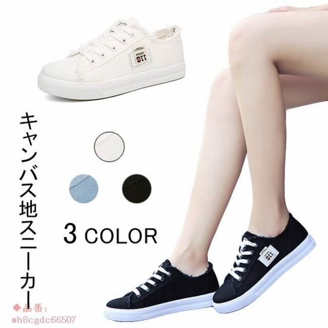 スニーカー レディース レースアップ 夏 シンプル 切りっぱなし おしゃれ シューズ カジュアル キャンバス地 春 靴 秋 2018春新作
