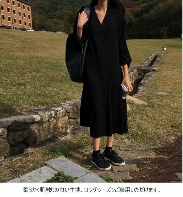 ワンピース レディース Vネック マキシ丈 ロング丈 無地 7分袖 カジュアル オシャレ オールインワン 春 夏 秋 2019春新作