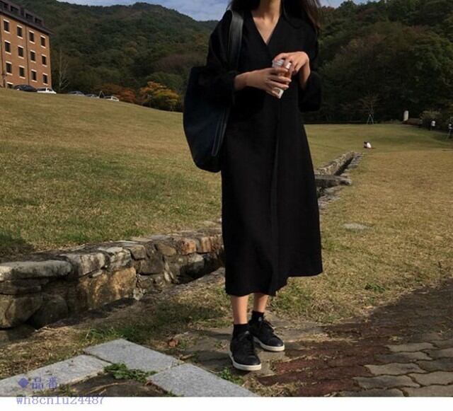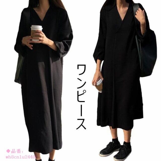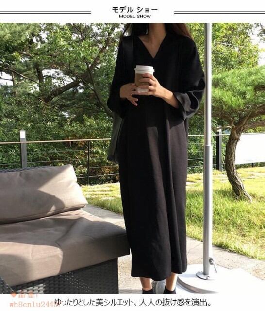 ワンピース レディース Vネック 無地 2019春新作 カジュアル ロング丈 マキシ丈 夏 オールインワン 秋 春 オシャレ 7分袖