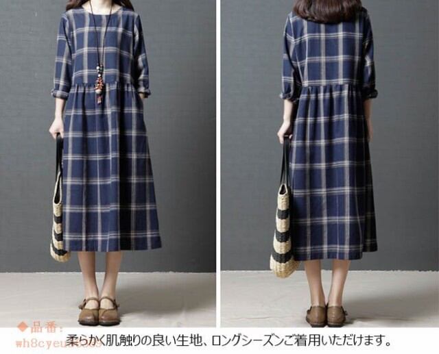 ワンピース レディース チェック柄 ロング丈 オールインワン 2018春新作 夏 長袖 秋 春 ミモレ丈 ゆったり