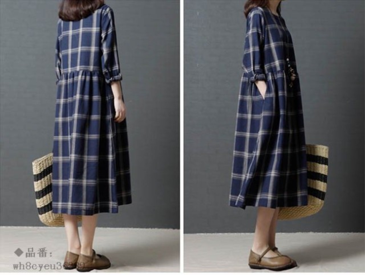 ワンピース レディース チェック柄 ロング丈 ミモレ丈 長袖 ゆったり オールインワン 春 夏 秋 2018春新作