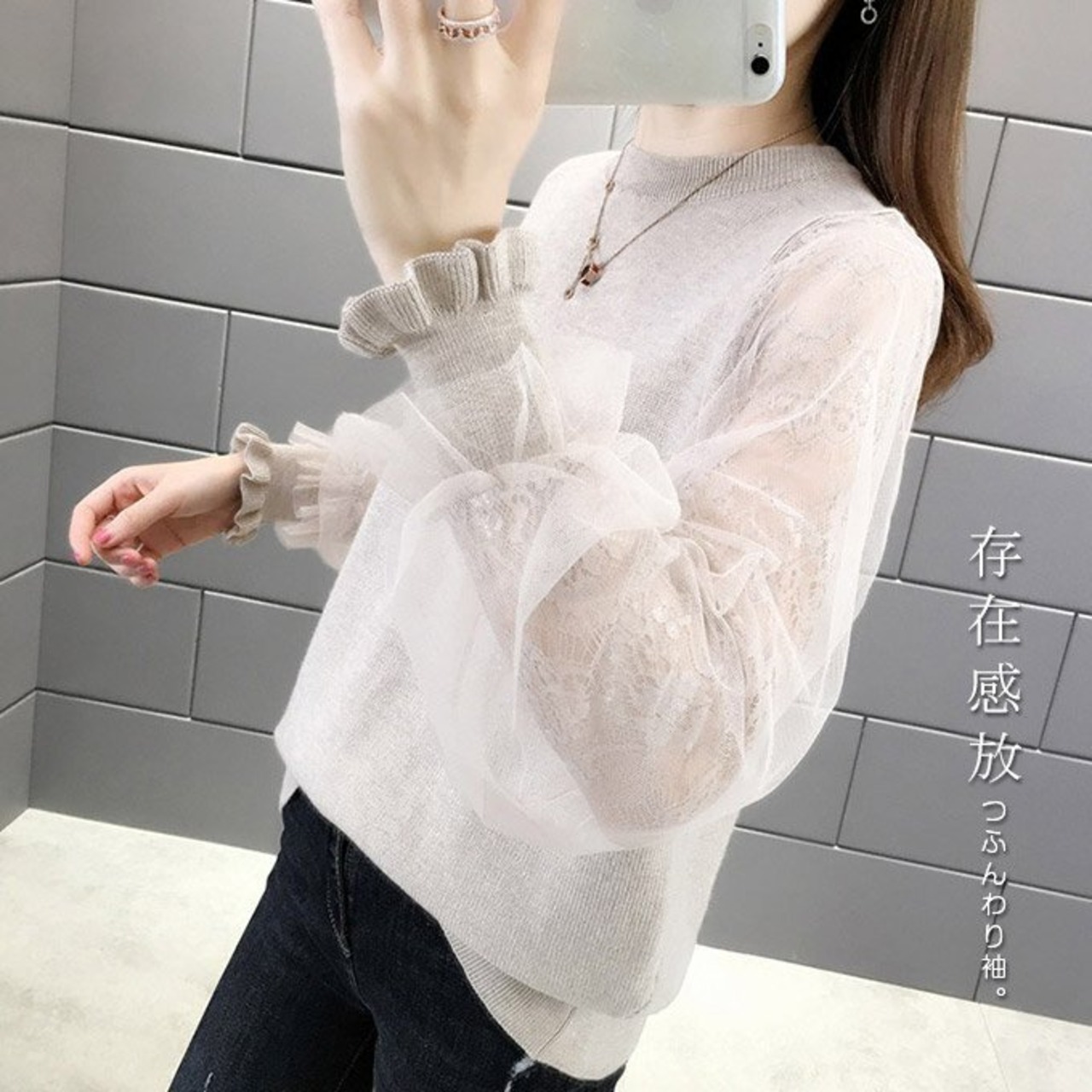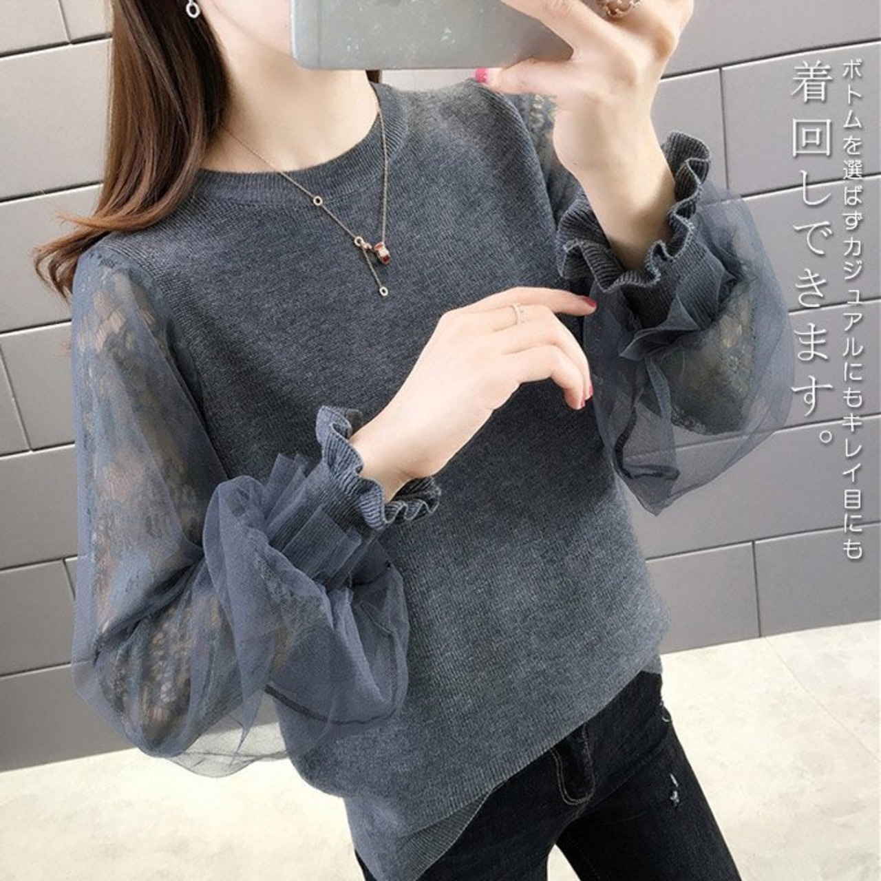 ふんわりとしたボリュームスリーブが可愛いニットです。