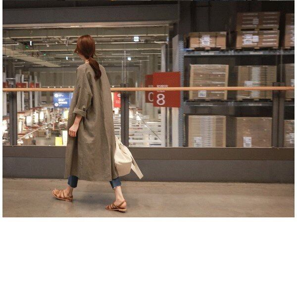 【連携キーワード】:トレンチコート レディース 40代 ロングコート スプリングコート 大きいサイズ 春コート ライトアウター アウター 薄手 コットンリネン 春服 春物 オシャレ 韓国風