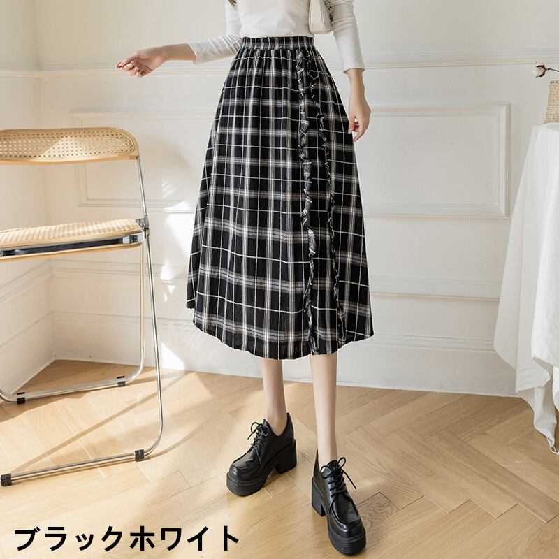 新作 スカートチェック プリーツスカート チェック Aラインスカート ハイウエストスカート 膝丈スカート 体型カバー 定番アイテム 卒業式入学式
