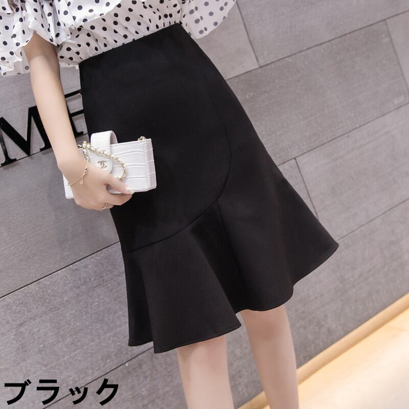 無地 新作 スカート マーメイドスカート アシンメトリー フリルスカート Aラインスカート ハイウエストスカート 体型カバー フェミニンな色 膝丈スカート 通勤