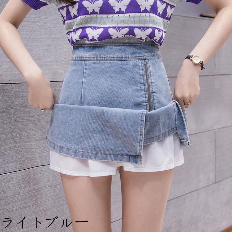 無地 デニムスカート プリーツスカート スカート 体型カバー Aラインスカート ハイウエストスカート スイート お出かけでも 入学式 新作 定番アイテム