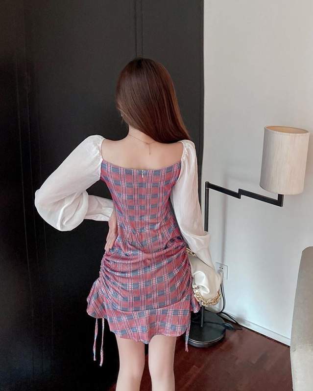 レディース 新作 チェック柄 ワンピース ミニスカート プリーツスカート 切り替えワンピ タックワンピース ハイウエストスカート 華麗 フェミニンな色 お出かけでも | funitem