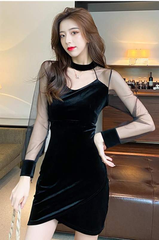 ドッキングワンピ シフォンワンピース ミニスカート アシンメトリー ワンピース ハイウエストスカート セクシー タイトスカート Vネック Vネック 披露宴 パーティ | funitem