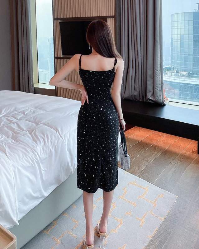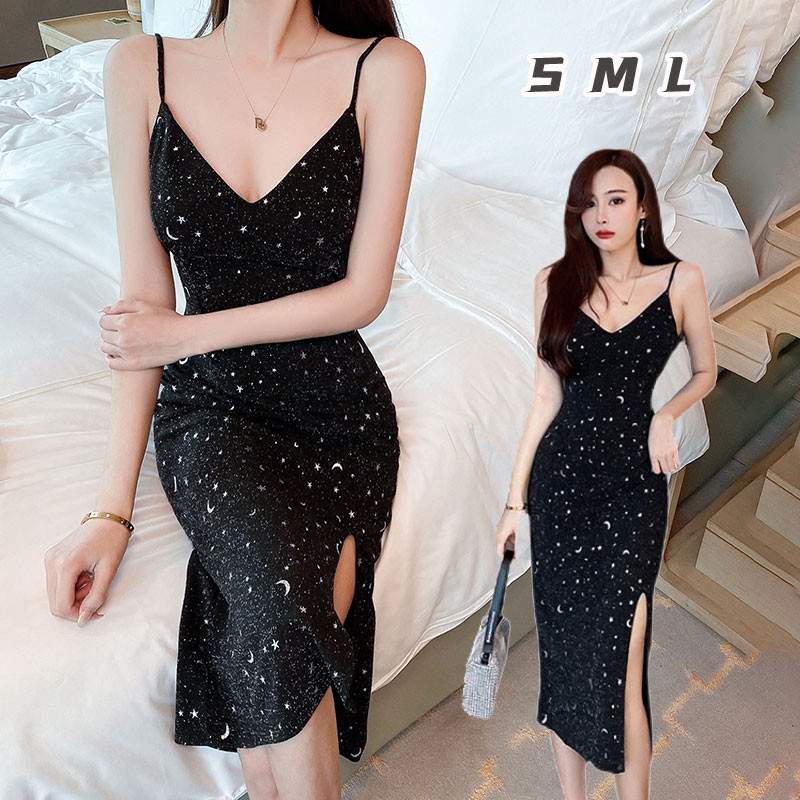 レディース キャミソール タイトスカート ひざ丈ワンピース 無地 深めのVネック スリップドレス チュニックワンピース スリット ワンピース お出かけでも 新作 夏 披露宴 | funitem