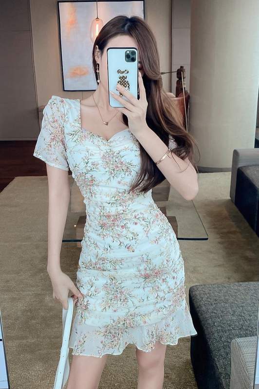 レディース プリントスカート マーメイドスカート フレアスカート ラッフルスカート 半袖 ハイウエストスカート チュニックワンピース フェミニンな色 花柄 スイート 通勤 披露宴 | funitem