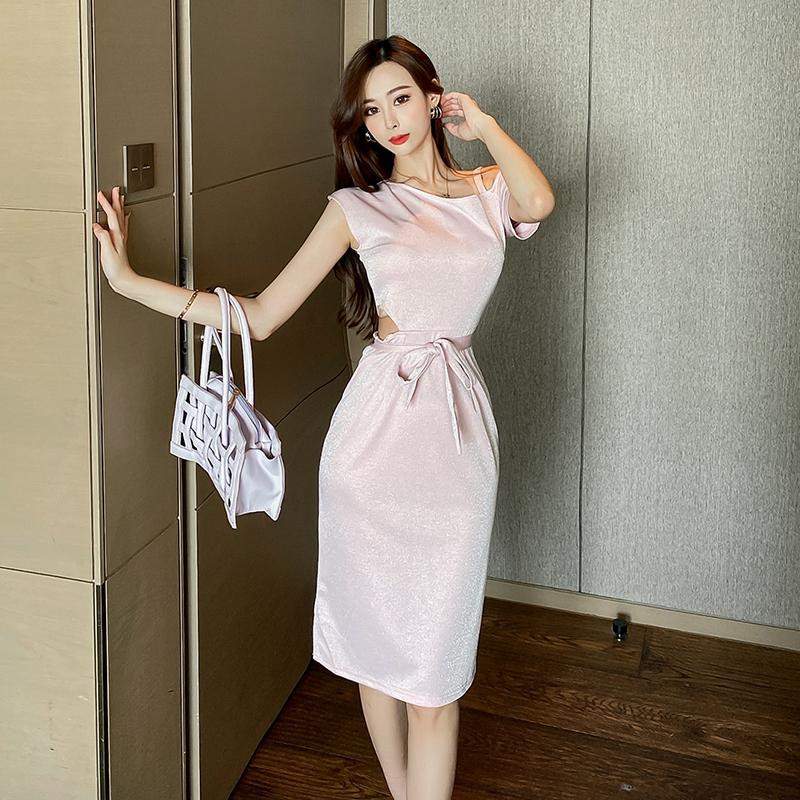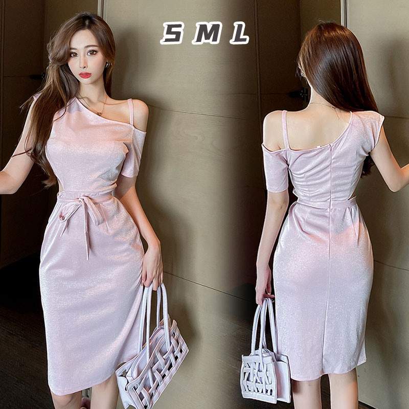 レディース キャミソール チュニックワンピース タイトシルエット スリット ワンピース 無地 オフネック ワンピース お出かけでも 半袖 プレーン 通勤 | funitem