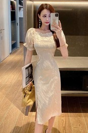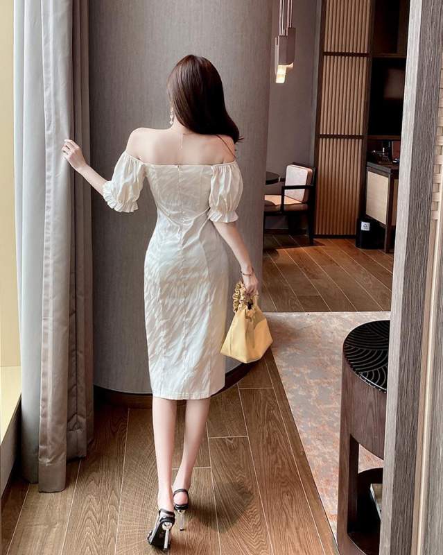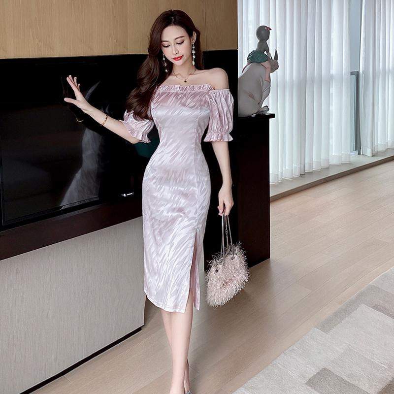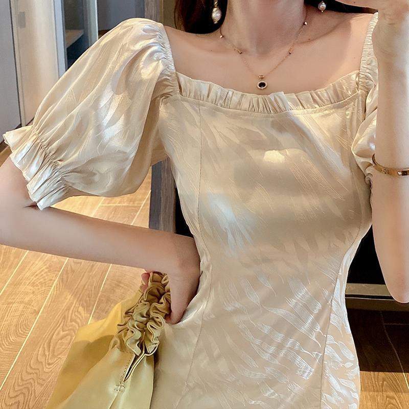 新作 パフスリーブ チュニックワンピース レディース ペンシルスカートひざ丈ワンピース ドッキングワンピ セクシー ハイウエストスカートペンシルスカート 披露宴 | funitem