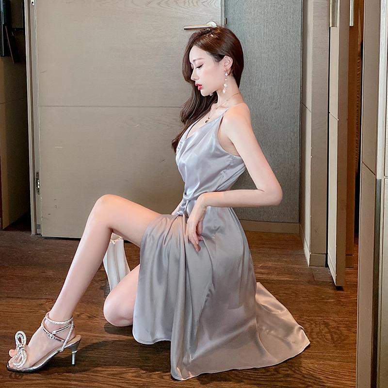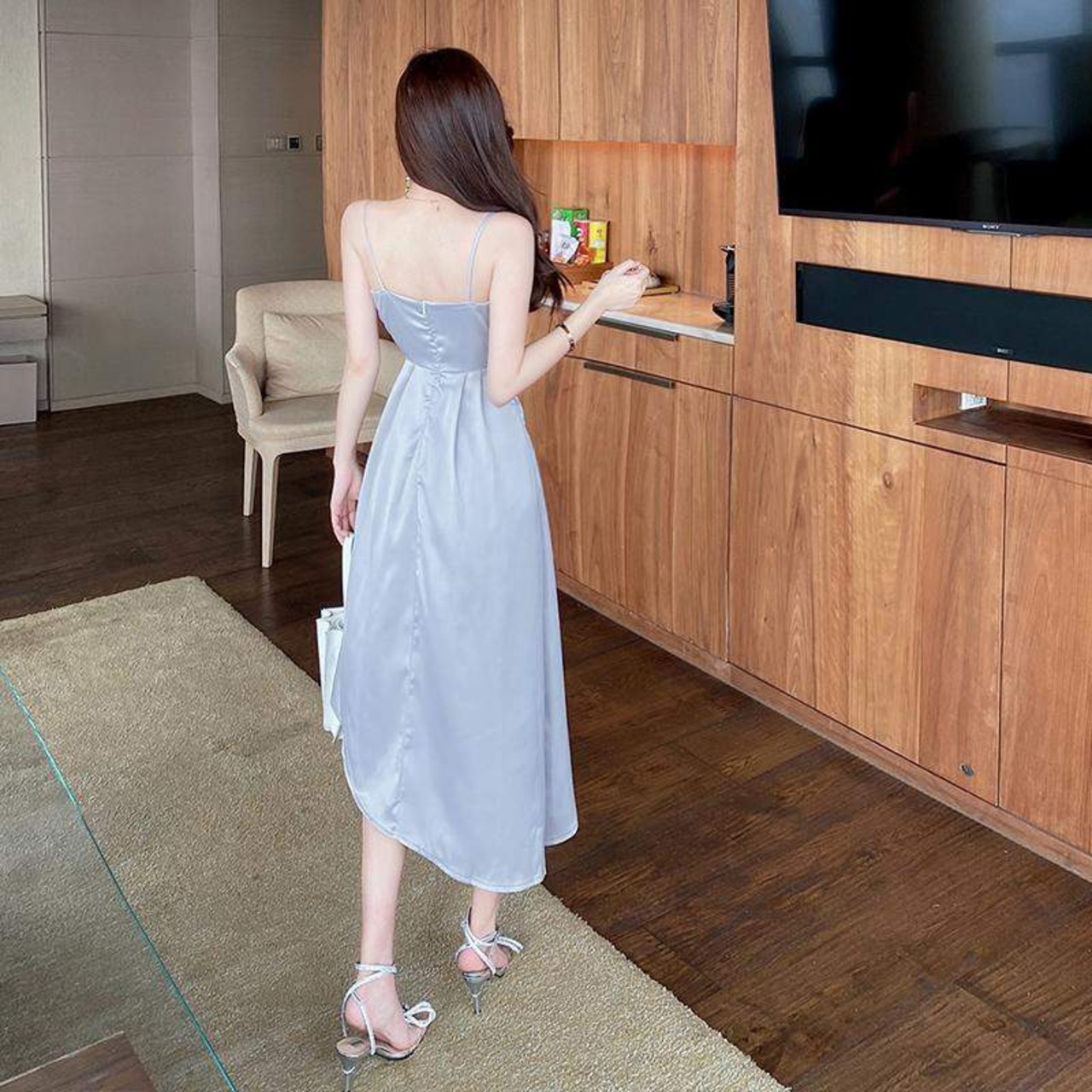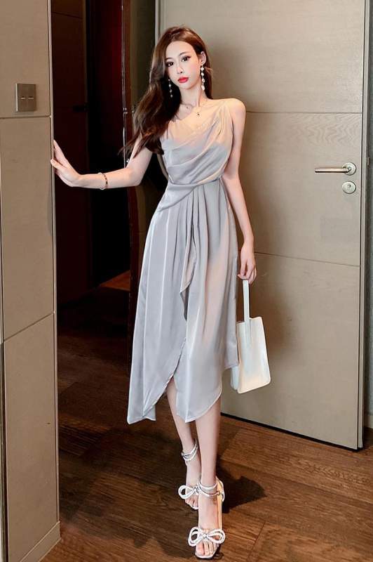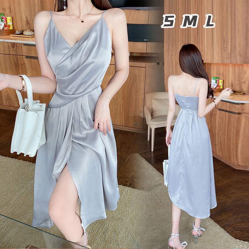 ジャンパースカート アシンメトリー ロングワンピース キャミソール スリット ワンピース タックワンピース チュニックワンピース 無地 フェミニンな色 セクシー 披露宴 | funitem