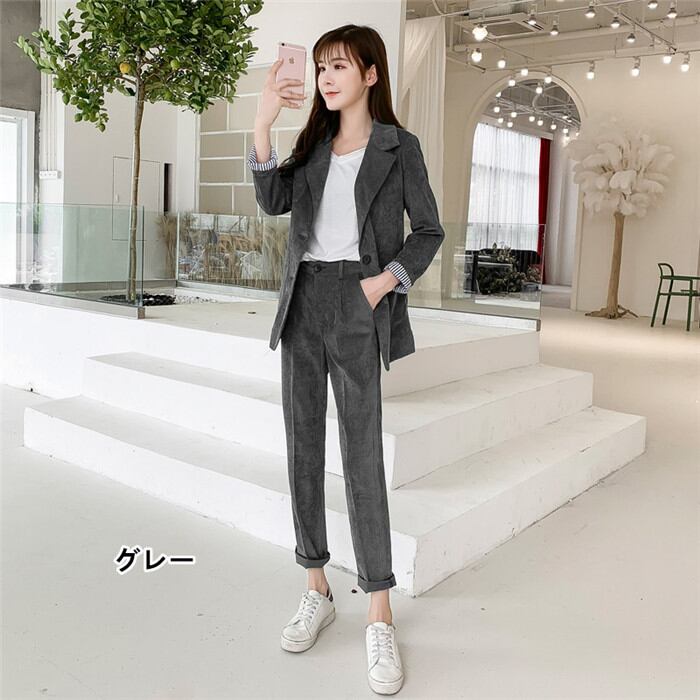 通勤 事務服 カジュアル オフィス 長袖 セットアップ コールテン 2点セット 秋春 スーツ キュロット パンツ ジャケット+パンツ 秋冬 春 冬 卒園式ブレザー 着こなし 上下セット ジャケット | funitem