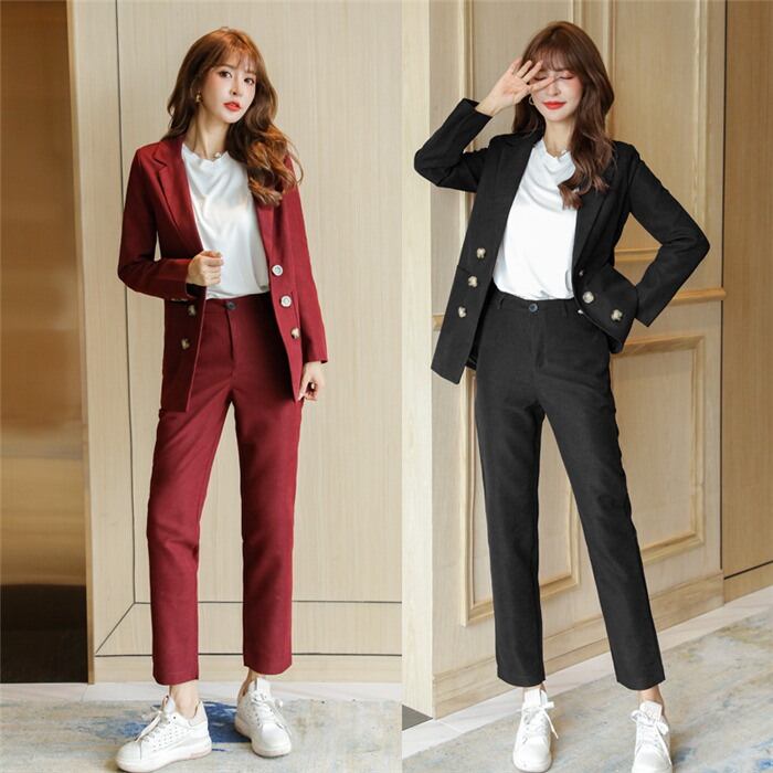 カジュアル スーツ 長袖 冬 通勤 セットアップ コールテン 秋春 ジャケット+パンツ 2点セット キュロット 事務服 オフィス 春 秋冬 パンツ 卒園式ブレザー 着こなし 上下セット ジャケット | funitem