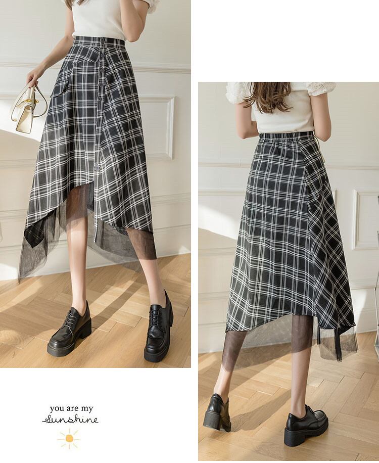スカート ミモレ丈スカート チェック アシンメトリー スカート ハイウエストスカート 切り替え Aラインスカート 新作 レディース お出かけでも 卒業式 入学式